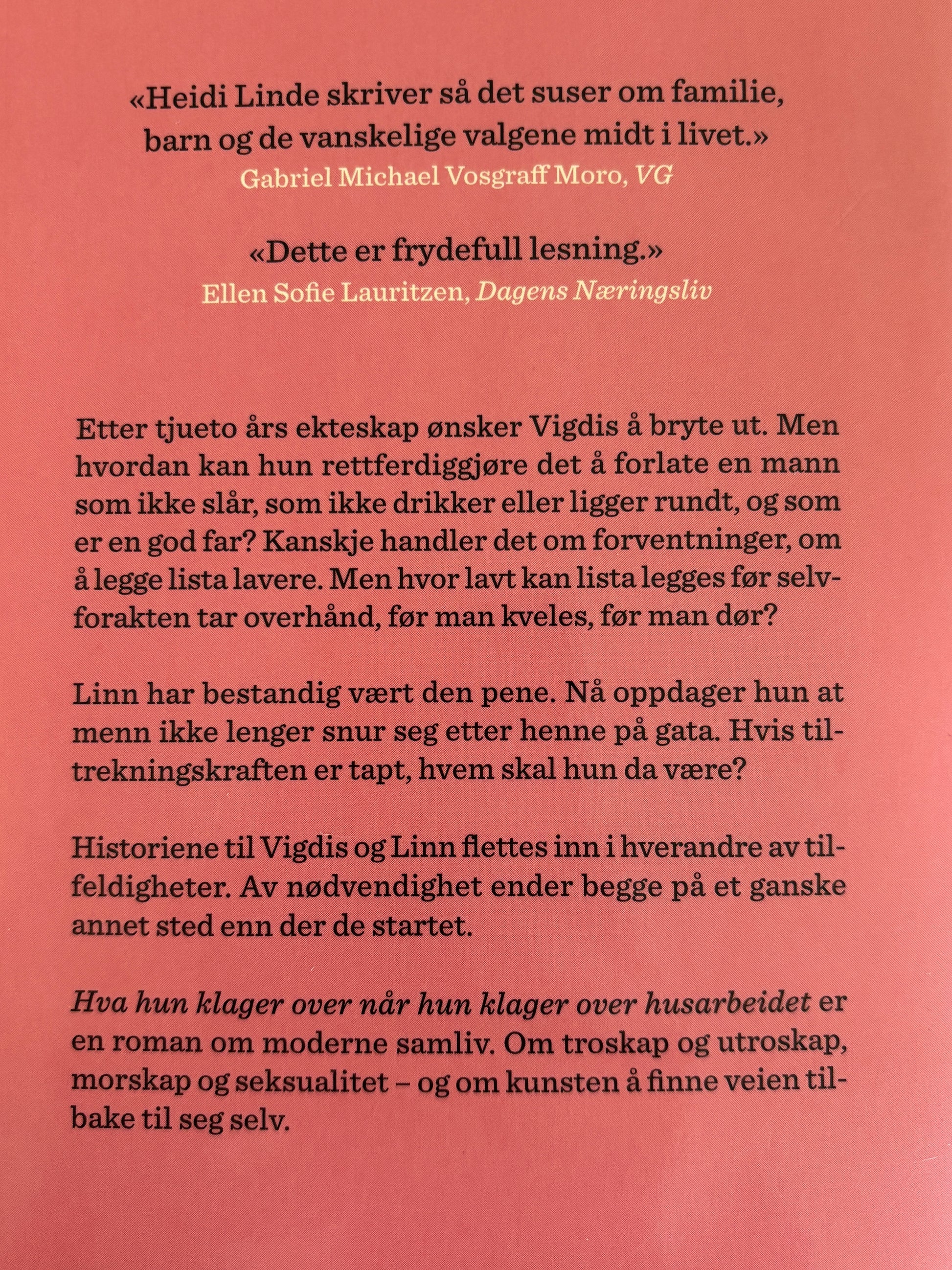 Linde, Heidi: Hva hun klager over når hun klager over husarbeidet